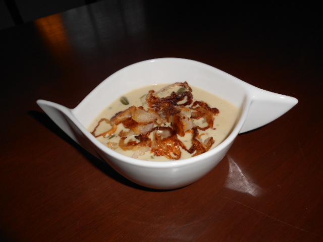 chestnut brown. Ladle soup into serving bowls and top each bowl with crispy